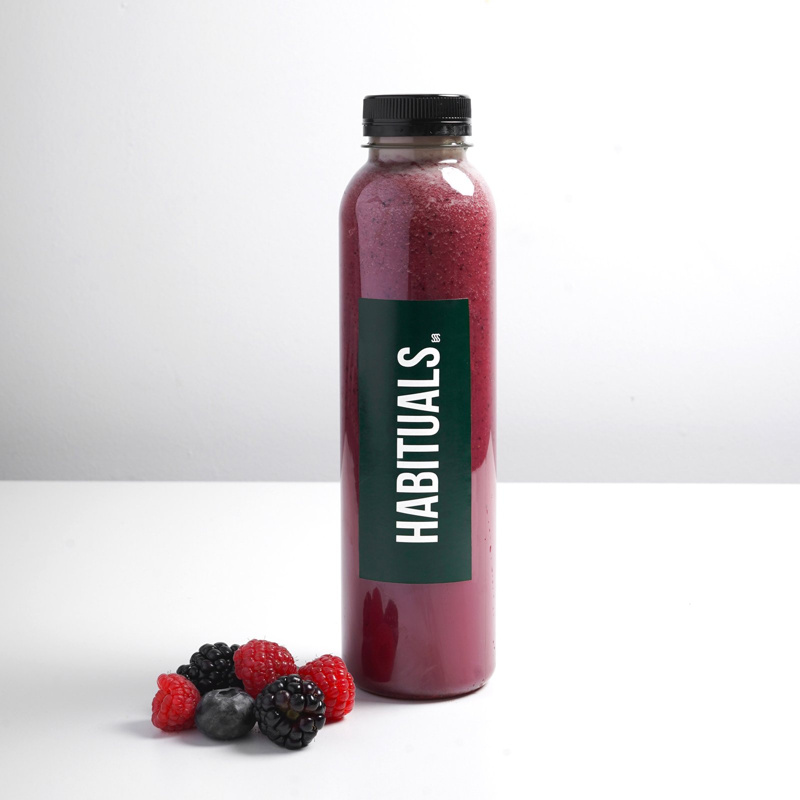 Zumo de frutos rojos (fresas, arándanos, moras) con plátano. 300ml o 500ml.